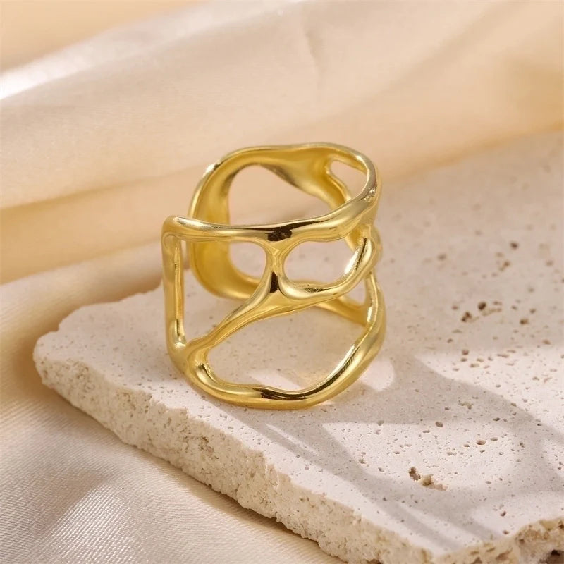 Anillos abiertos huecos de acero inoxidable, estilo minimalista