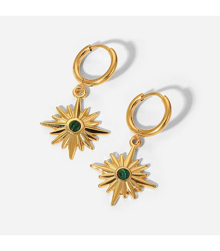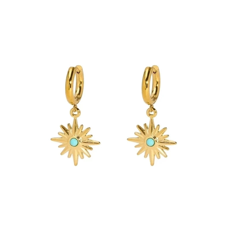 Pendientes de Aro Estrella con piedra turquesa